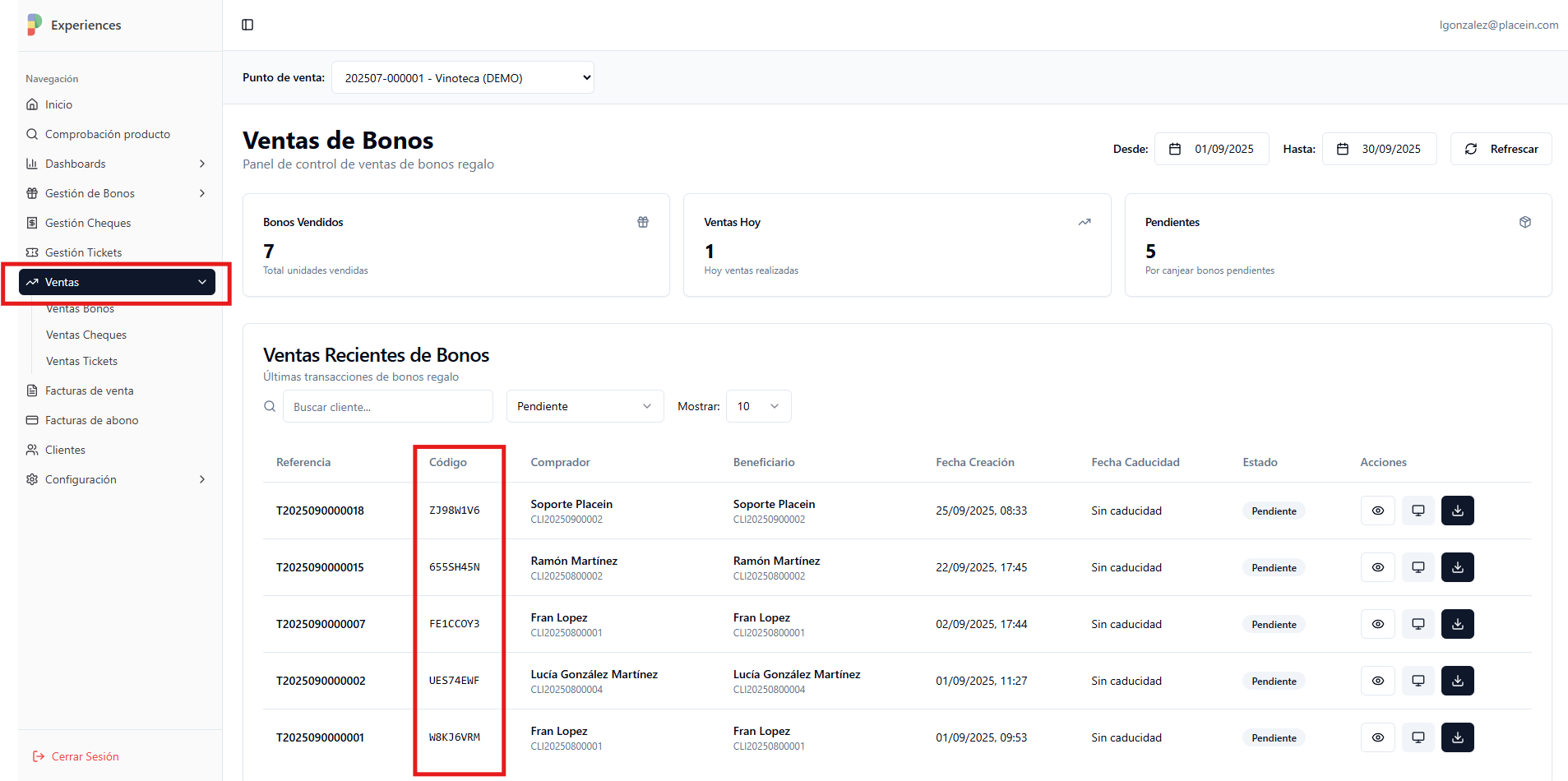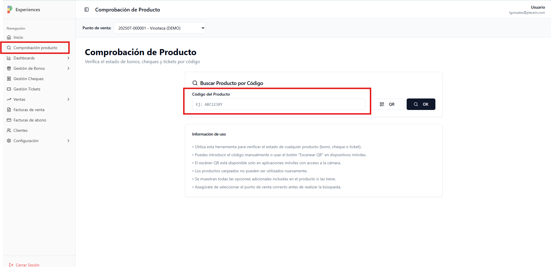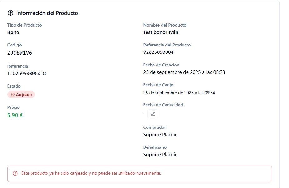 Vamos a aprender a comprobar el estado de un producto: bono, tarjeta o entrada/ticket en tu panel de gestión de PlaceIn Experience.